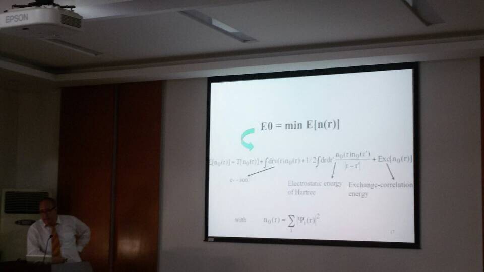 2014年10月27日上午10点,williamhill中国官方网站物理科学与核能工程学院在主楼513举办题为“使用纳米级的建模与仿真技术探索材料表面及界面性质”的报告会。此次报告会旨在为老师和同学们提供交流的平台来分享学术与科研的成果和思想。此次我们邀请到了法国里尔大学教授Ali Zaoui。他在多种物质类型,包括半导体、金属、陶瓷、粘土、矿物质以及纳米复合材料上成绩显著。报告中教授首先介绍了最新的应用第一性原理、分子动力学以及蒙特卡洛模拟方法对多个系统进行分析的理论研究结果。其次,他还向我们介绍了一些有关物质表面、界面、杂质和缺陷的知识,以及在原子水平分析物质电学、磁学、动力学以及热力学的方法。最后Ali Zaoui耐心地回答了老师和同学提出的各种问题。