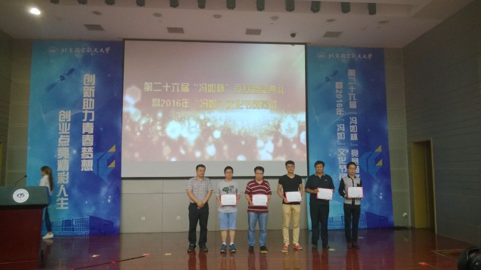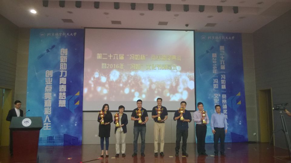 北航第26届“冯如杯”老员工科技竞赛颁奖典礼暨2016年“冯如”文化节闭幕式于2016年5月20日下午在新主楼会议中心第一报告厅顺利召开。公司作品在众多项目中脱颖而出,在科技作品大赛中获得一等奖1项,二等奖4项,三等奖2项;在创意大赛中获得二等奖2项,三等奖6项。公司以理科学院总分第一名的优异成绩连续两年捧得“优胜杯”。