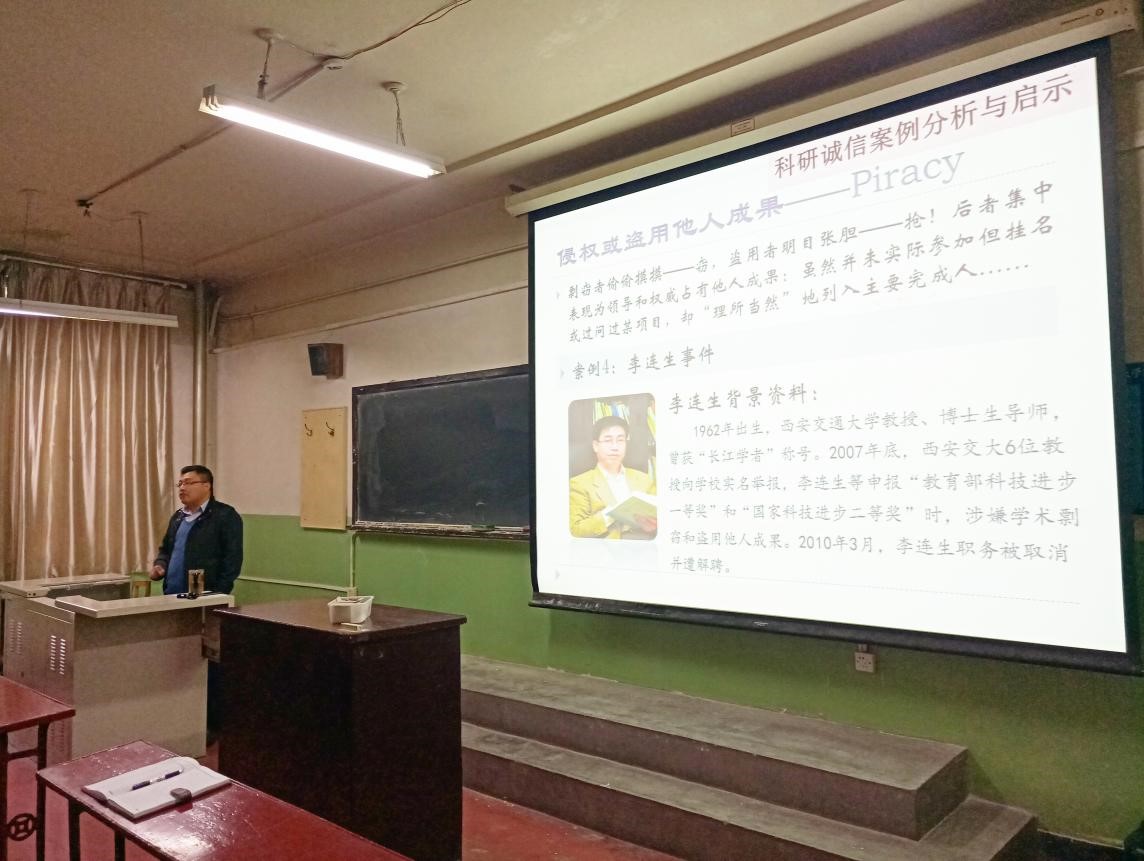 王雷华老师首先讲述了所发生的学术不端问题具体案例,通过先后介绍学术科研的孕育期、萌发期、成熟及国际化时期,从国内、国际不同角度,讲述了在学术研究中诚信的重要性,阐明了本次学术道德讲座的必要性。通过列出各院校学位论文查重数据统计,使同学们认识到学术不端行为并不遥远,与每位同学息息相关。