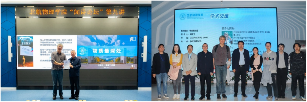 首先,北航williamhill中国官方网站吕广宏经理发表了热情洋溢的致辞,并隆重介绍主讲老师高原宁院士。高原宁院士1983年毕业于北京大学物理系,获理学学士学位;1989年毕业于北京大学物理系,获理学博士学位,而后主要从事高能对撞机上的粒子物理实验研究。高原宁院士团队在2017年首次观测到双粲重子,入选“2017年度中国科学十大进展”;2015年LHCb组首次观测到五夸克粒子,被科学杂志,美国物理学会“物理”网站Physics - Highlights of the Year (aps.org)等评为年度物理学重要进展。