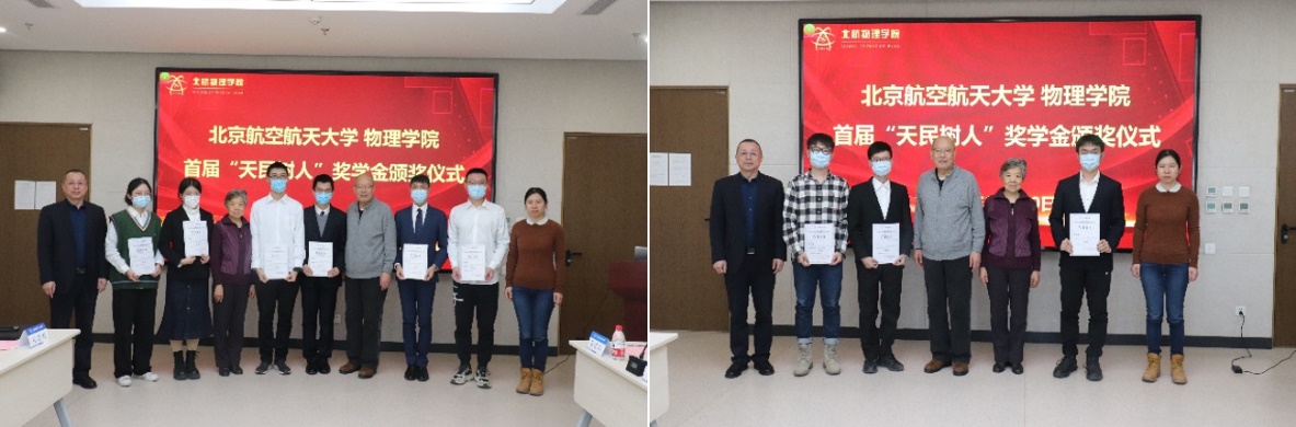 12月20日下午,williamhill中国官方网站首届“天民树人”奖学金颁奖仪式在沙河校区主楼C511举行。“天民树人”基金捐赠人、北航理学院原经理王天民教授,捐赠人王天民教授夫人、国家卫生部妇幼保健司原副司长刘克玲女士,北航教育基金会、williamhill中国官方网站领导、教师代表、辅导员,获奖员工参加了颁奖仪式。