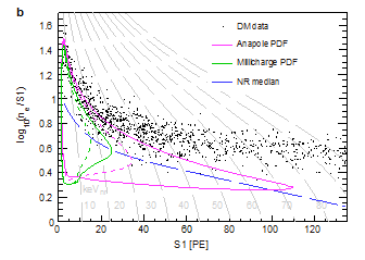 图3:PandaX-4T首批暗物质探测数据闪光信号(S1)和电离信号(S2,ne)的分布。