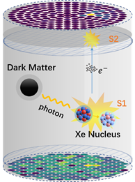 2009年起,PandaX合作组利用锦屏地下实验室极低辐射本底环境,研制了三代液氙探测器(PandaX-I、PandaX-II、PandaX-4T),并开展了一系列针对暗物质和中微子的实验研究。宇宙中的暗物质可以穿透地球到达地下实验室,如果暗物质和普通物质间有相互作用,会同探测器中的氙原子碰撞并产生反冲信号,在探测器中以氙原子闪光(S1)和电离(S2)的形式表现出来。探测器的工作原理如下图所示。