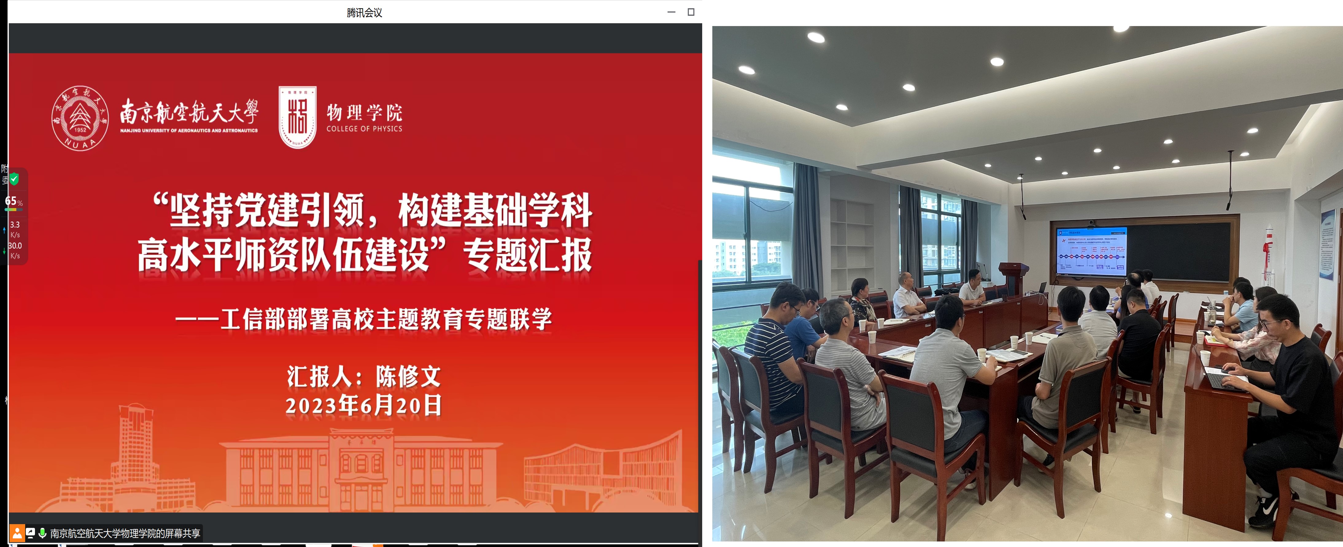 南京航空航天大学物理公司党委书记陈修文发言