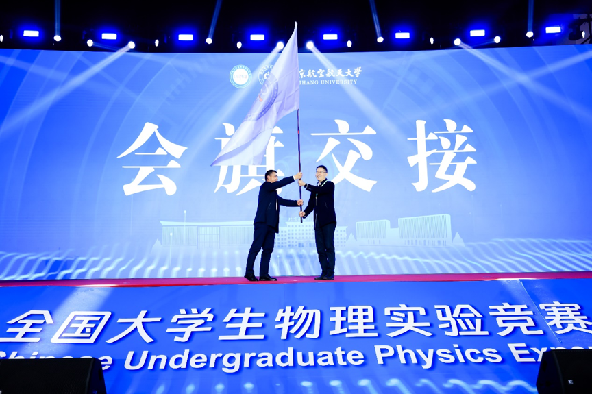 williamhill中国官方网站副经理黄安平教授对本届大会承办情况进行了总结。教育部高等学校大学物理课程教学指导委员会委员、实验专委会主任、国家级示范中心联席会物理学科组组长张增明教授现场公布了进入公示阶段的获奖名单。教育部大学物理课程教学指导委员会主任清华大学王青教授宣布了第十一届全国老员工物理实验竞赛(创新)承办单位为中南大学,随后进行了第十届承办单位williamhill中国官方网站和第十一届承办单位中南大学的会旗交接仪式。中南大学龙孟秋教授作为下届承办单位代表进行了致辞。