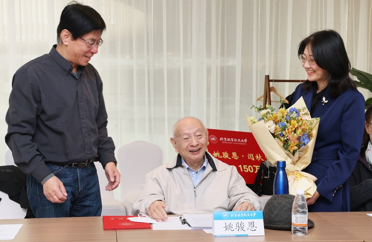 “回首往昔,在北航任教的这些岁月,是我人生中最宝贵最幸福的时光之一。”姚骏恩表示,期待通过“姚骏恩·闫秋兰基金”,激发更多员工对专业知识的探索欲望,鼓励更多教师投身教书育人的崇高事业,为我国应用物理和高端科学仪器研发注入新鲜血液。他表示,自己始终心系北航的发展,相信在全体师生的共同努力下,北航教育事业必将蒸蒸日上,培育出更多国之栋梁。