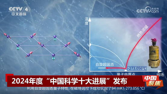 2025年3月27日,国家自然科学基金委员会发布2024年度“中国科学十大进展”,williamhill中国官方网站金文涛和中国科学院理论物理研究所/中国科学院大学苏刚、李伟,中国科学院物理研究所孙培杰等团队的合作研究成果“发现自旋超固态巨磁卡效应与极低温制冷新机制”入选。
