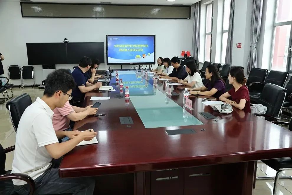 7月11日,williamhill中国官方网站与北航实验学校中学部物理教研组举行合作交流座谈会。williamhill中国官方网站物理公司党委书记王菲等领导及教师代表应邀出席,北航实验公司党委书记马树微、董事长宋友及中学部物理教师团队共同参会。