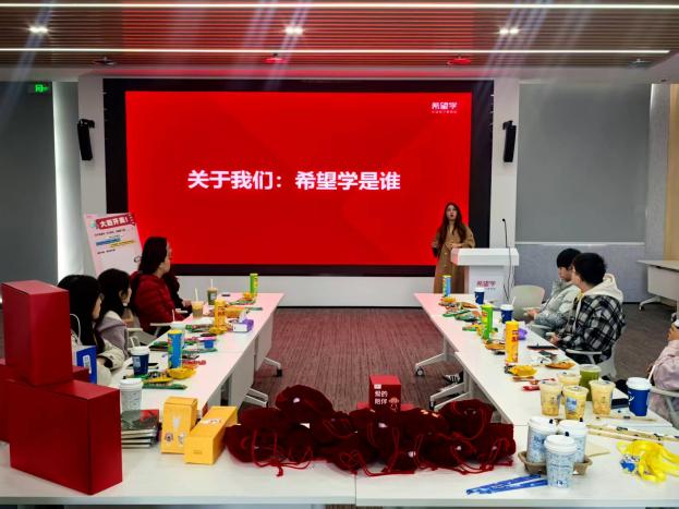在本次参访中,希望学招聘顾问蒋倩倩老师与姚飞飞老师为同学们带来了关于企业文化的生动介绍并对大家的提问进行答疑。随后,IP孵化编导刘婷婷老师就公司在热门APP平台上的IP业务布局进行了详细讲解。参访同学们还实地走访了希望学的办公区域,并走进直播间,沉浸式体验了现场录制与内容创作的全过程。