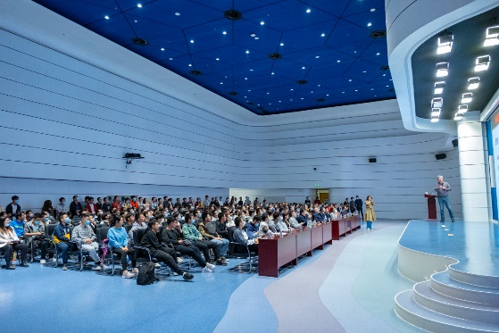 在讲座中,高原宁院士首先向大家提出问题“组成世界的基本粒子是什么?粒子间的相互作用规律是什么?”而粒子物理就是试图解决这个古老的科学问题”。紧接着,高原宁院士从Higgs粒子发现的过程讲起,阐述了粒子的模型以及范式,为各位老师和同学揭开了这些看不见摸不着的微观基本粒子的神秘面纱。随后,高原宁院士又向大家介绍了探寻微观粒子的重要科学装置——加速器以及粒子物理研究中的各种科学研究手段和方法,让大家仿佛亲临LHCb研究现场感受科学家们的心路历程。高原宁院士以风趣幽默的语言、巧妙的类比、以及对探索未知源自心底的热爱感染了在场每一名观众,让大家意犹未尽。