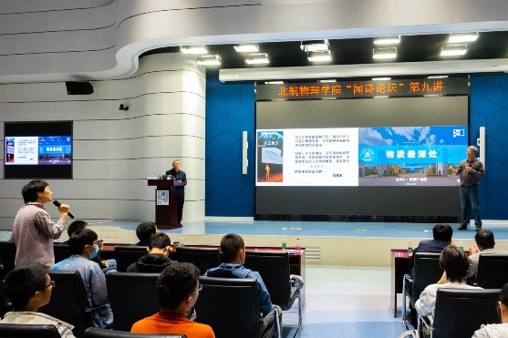 首先,北航williamhill中国官方网站吕广宏经理发表了热情洋溢的致辞,并隆重介绍主讲老师高原宁院士。高原宁院士1983年毕业于北京大学物理系,获理学学士学位;1989年毕业于北京大学物理系,获理学博士学位,而后主要从事高能对撞机上的粒子物理实验研究。高原宁院士团队在2017年首次观测到双粲重子,入选“2017年度中国科学十大进展”;2015年LHCb组首次观测到五夸克粒子,被科学杂志,美国物理学会“物理”网站Physics - Highlights of the Year (aps.org)等评为年度物理学重要进展。